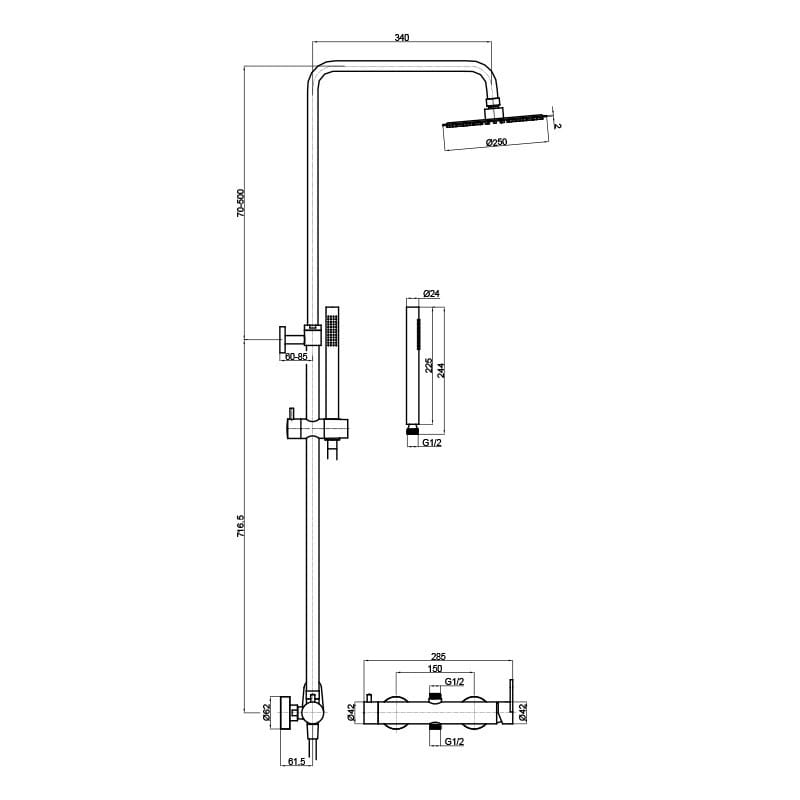 Natynkowy zestaw prysznicowy z deszczownicą Cetus Matt black Lavita