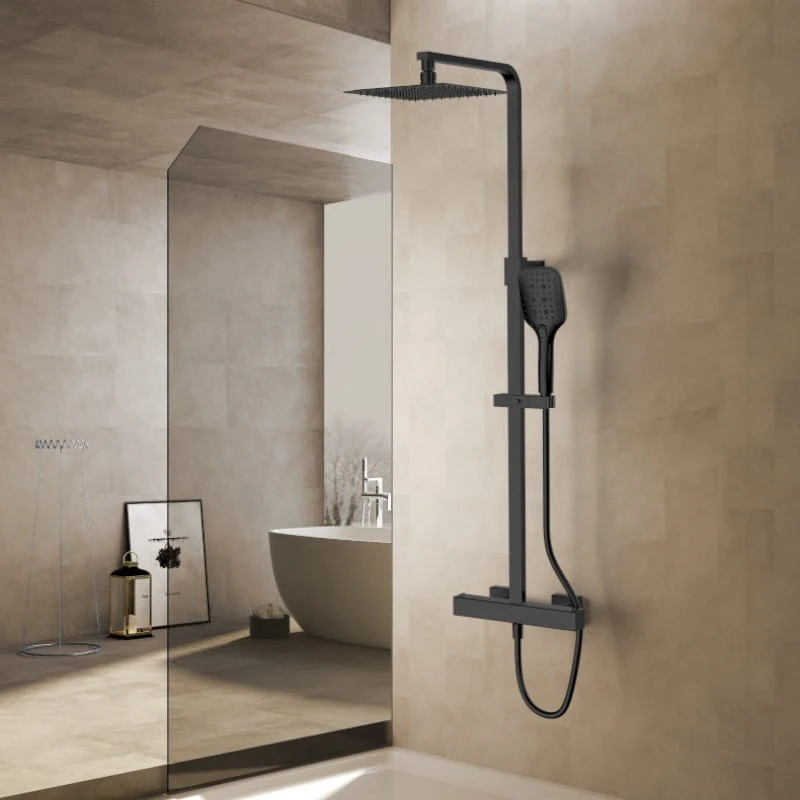 Zestaw prysznicowy termostatyczny z deszczownicą Cetus Matt Black to idealne rozwiązanie dla osób ceniących połączenie komfortu, estetyki i innowacyjnych rozwiązań w przestrzeni łazienkowej.