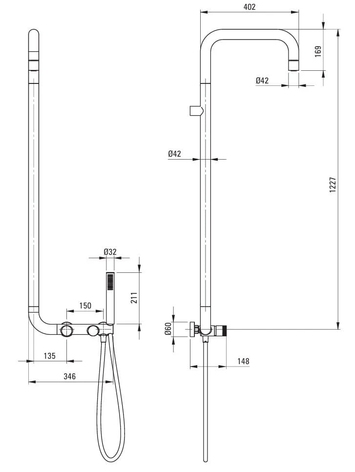 Deszczownica z baterią prysznicową stal szczotkowana Silia Hexa Deante