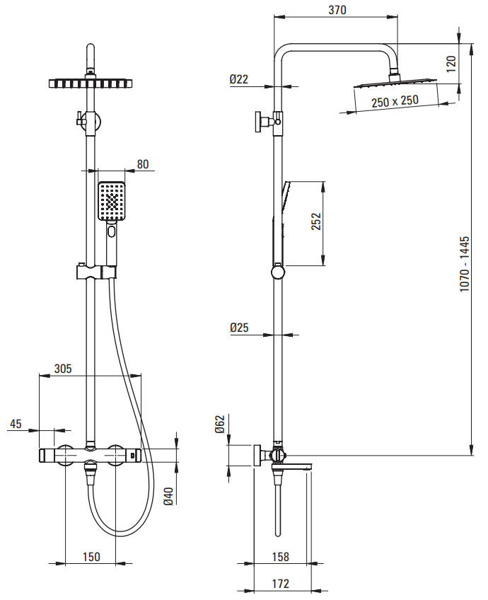 - DESZCZOWNICA - Regulacja wysokości drążka od [mm] 1070