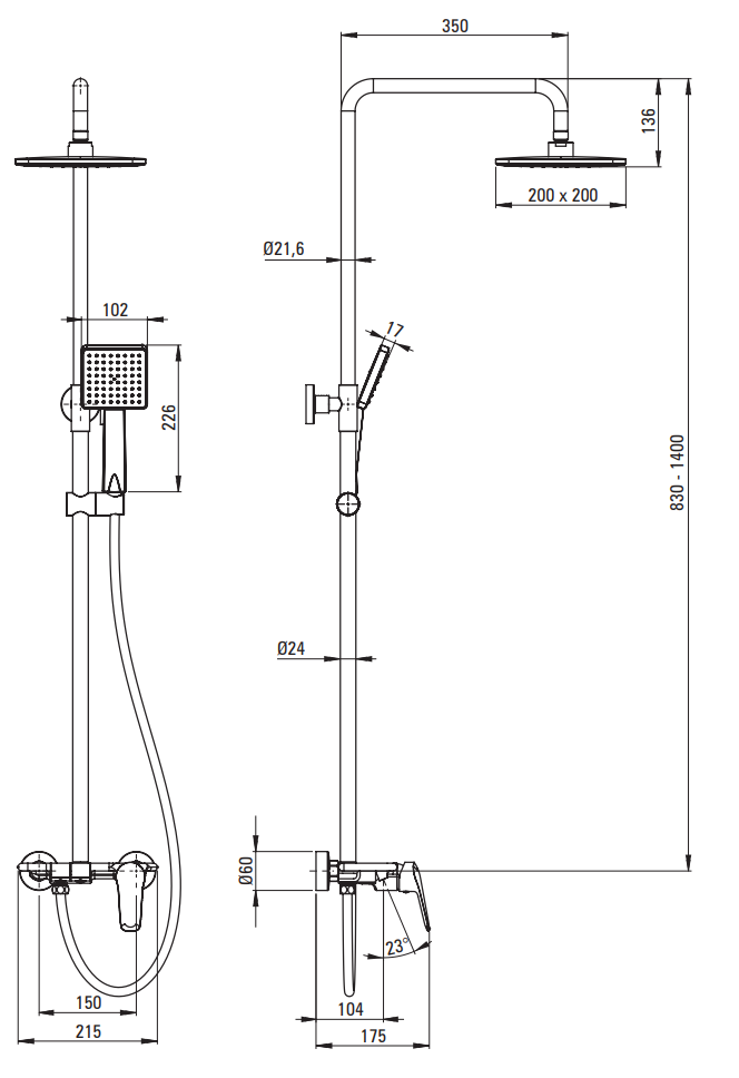 - DESZCZOWNICA - Regulacja wysokości drążka do [mm] 1400