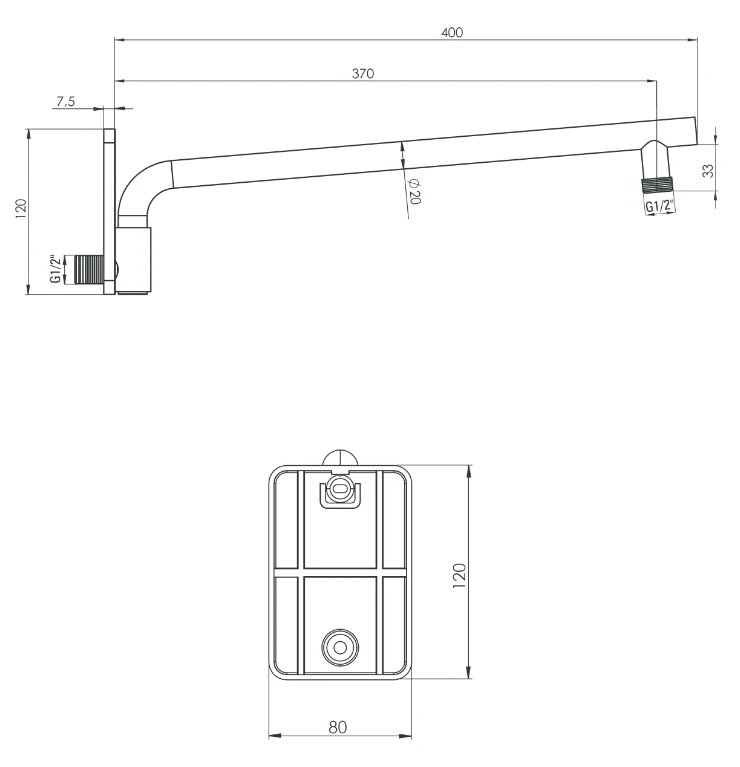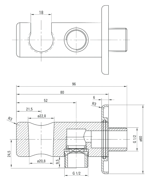 - Przyłącze kątowe węża natrysku z uchwytem bocznym na słuchawkę - kwadratowe