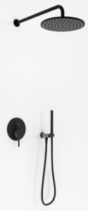 Zestaw prysznicowy podtynkowy Axel Black firmy Kohlman w czarnym matowym wykończeniu pasuje zarówno do klasycznych, jak i nowoczesnych łazienek.