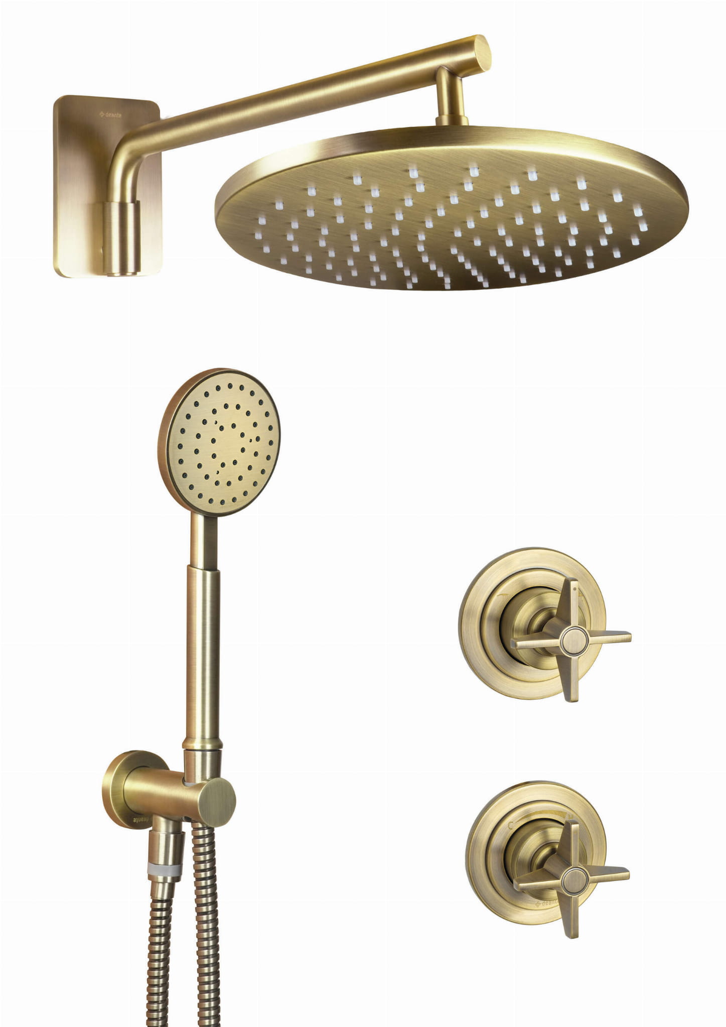 Zestaw prysznicowy podtynkowy Temisto w kolorze mosiądzu firmy Deante.