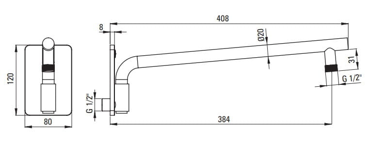 - Zasięg wylewki natryskowej/ wannowej [mm] 400