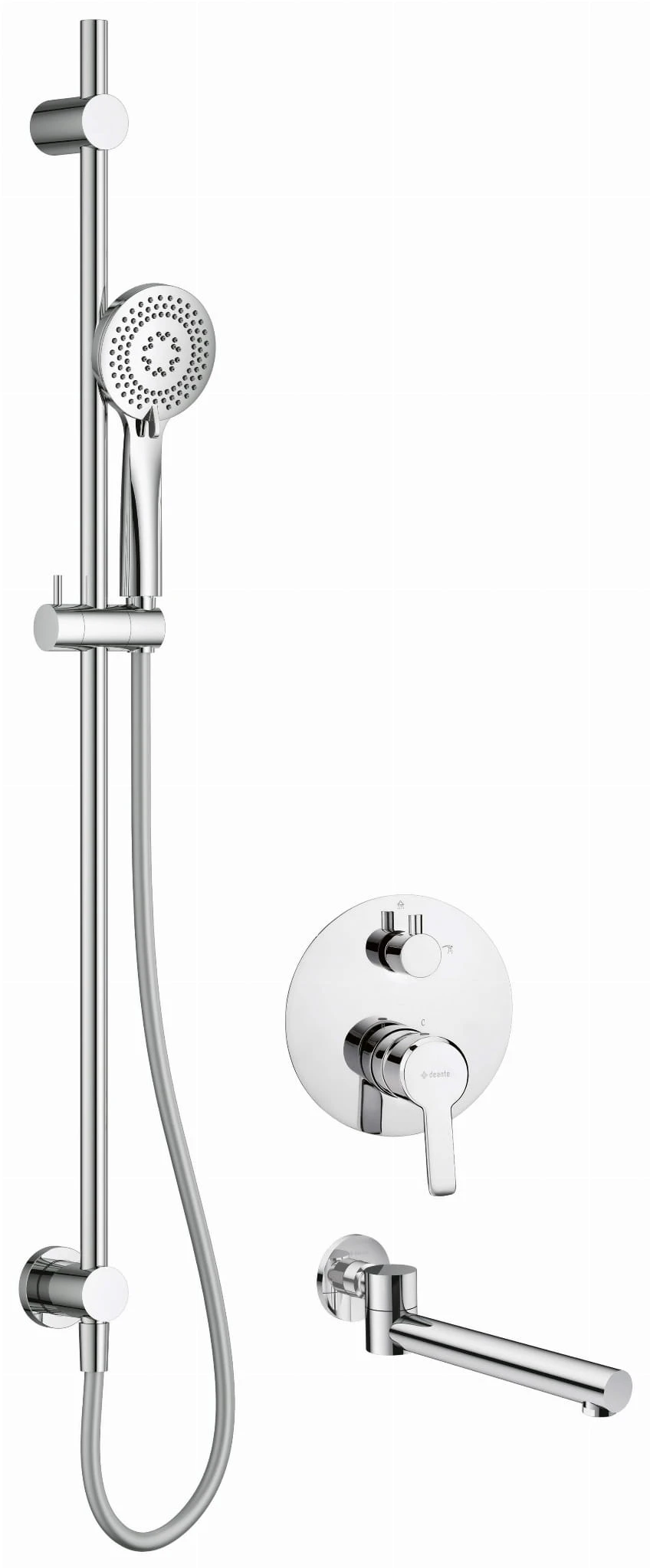 Zestaw prysznicowy podtynkowy z wylewką wannową chrom Arnika Deante