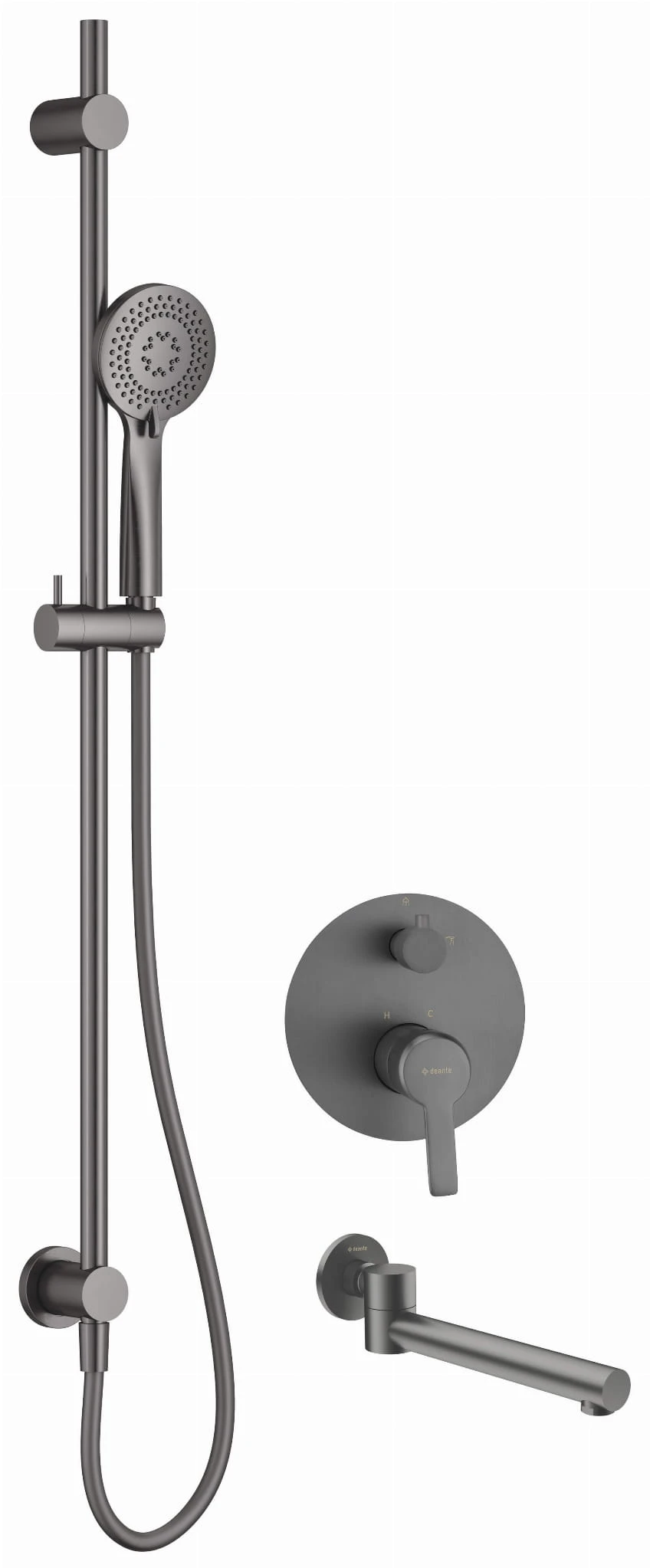 Zestaw prysznicowy podtynkowy z wylewką wannową titanium Arnika Deante
