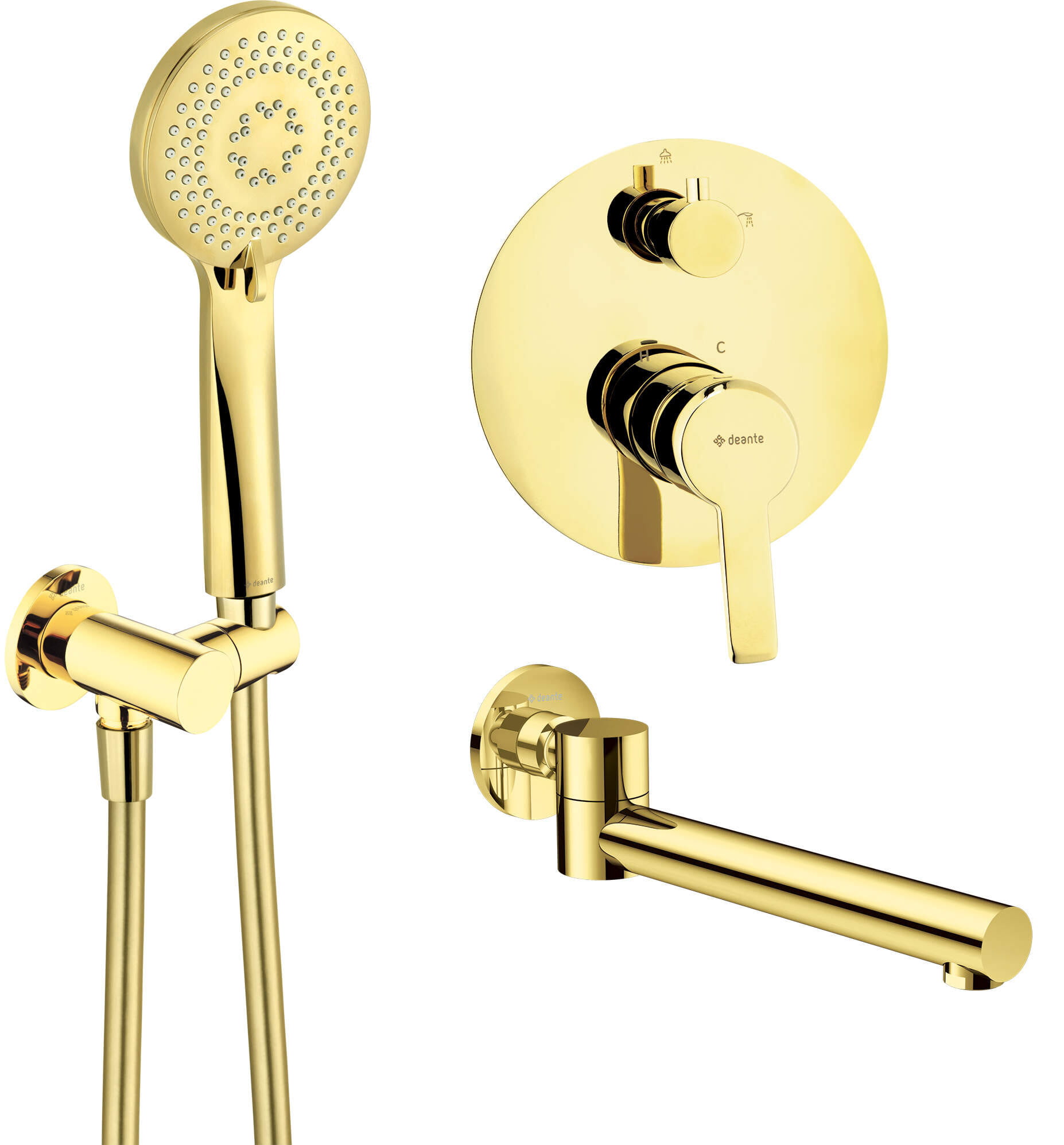 Zestaw prysznicowy podtynkowy z wylewką wannową złoty Arnika Deante