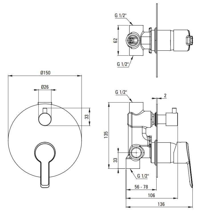 - Zasięg wylewki natryskowej/ wannowej [mm] 230