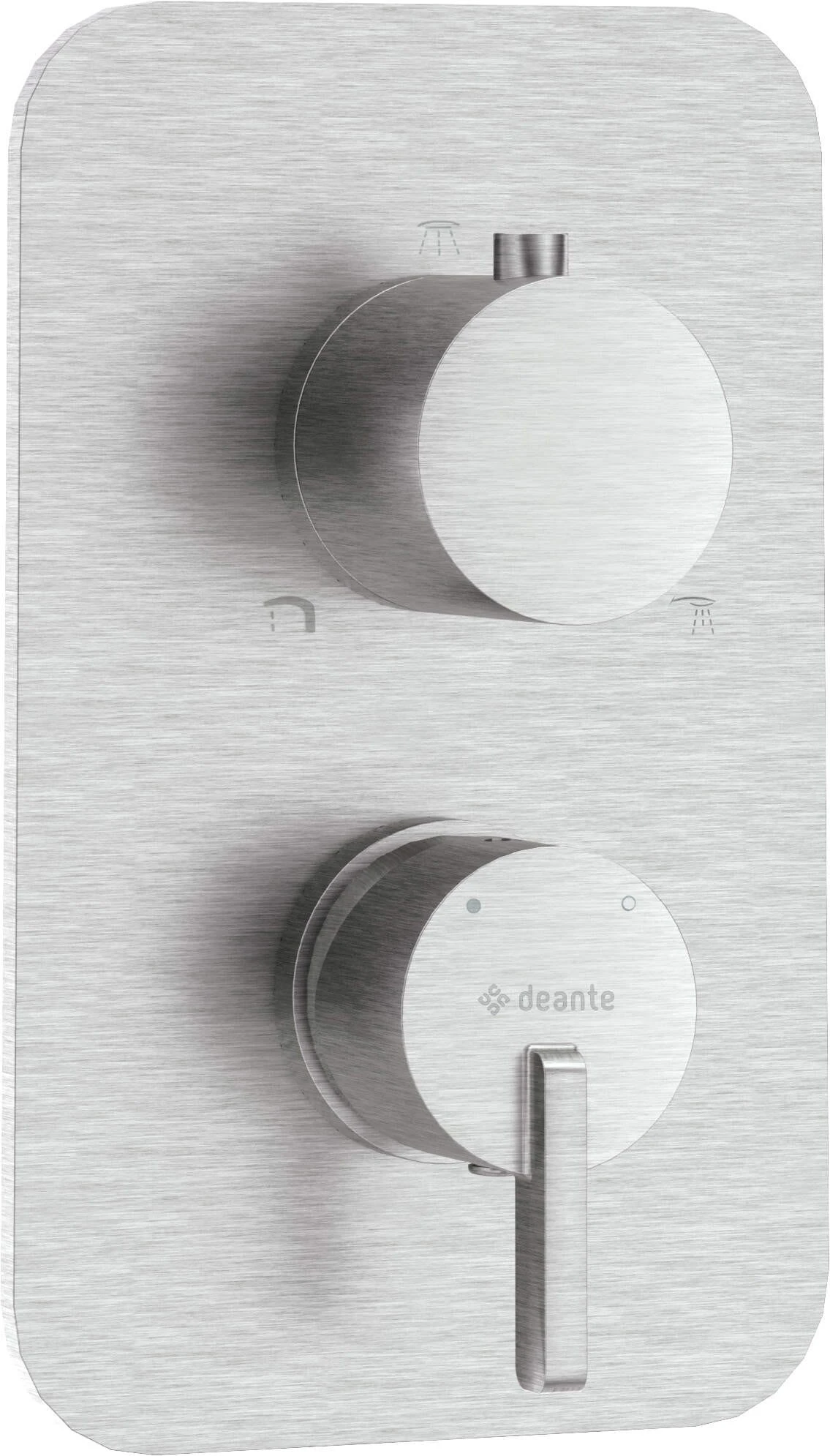 Element zewnętrzny do BOXa mieszaczowego Silia firmy Deante w kolorze szczotkowanej stali.