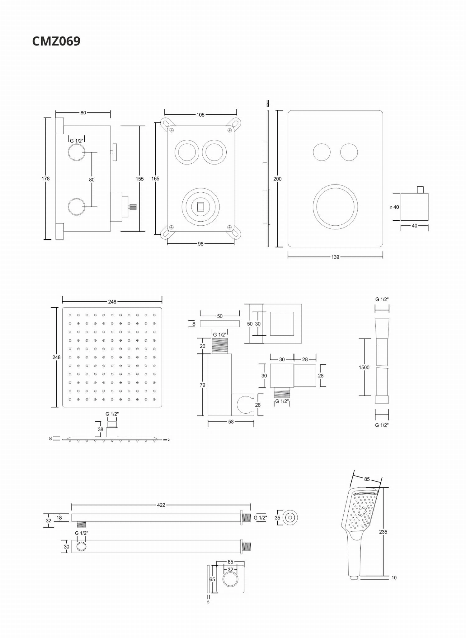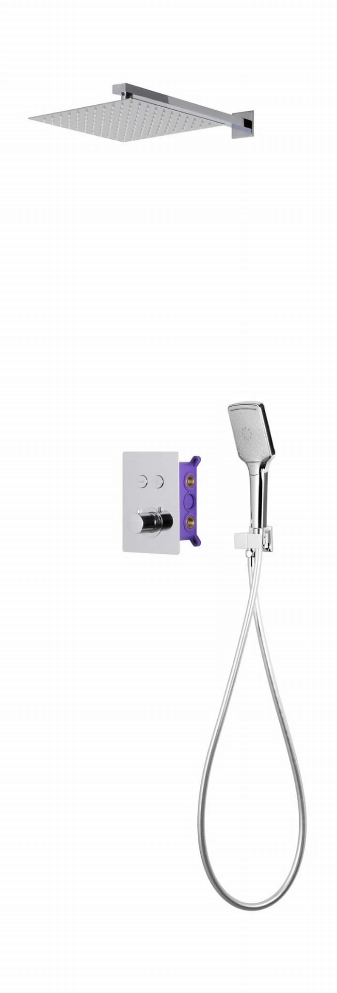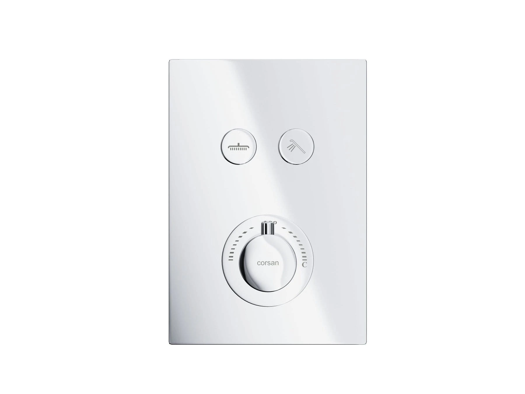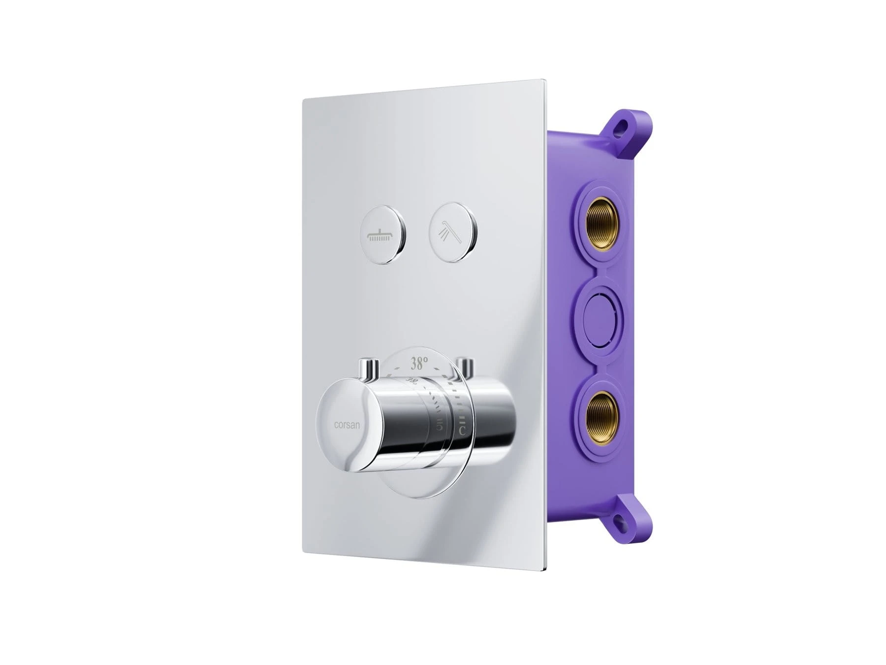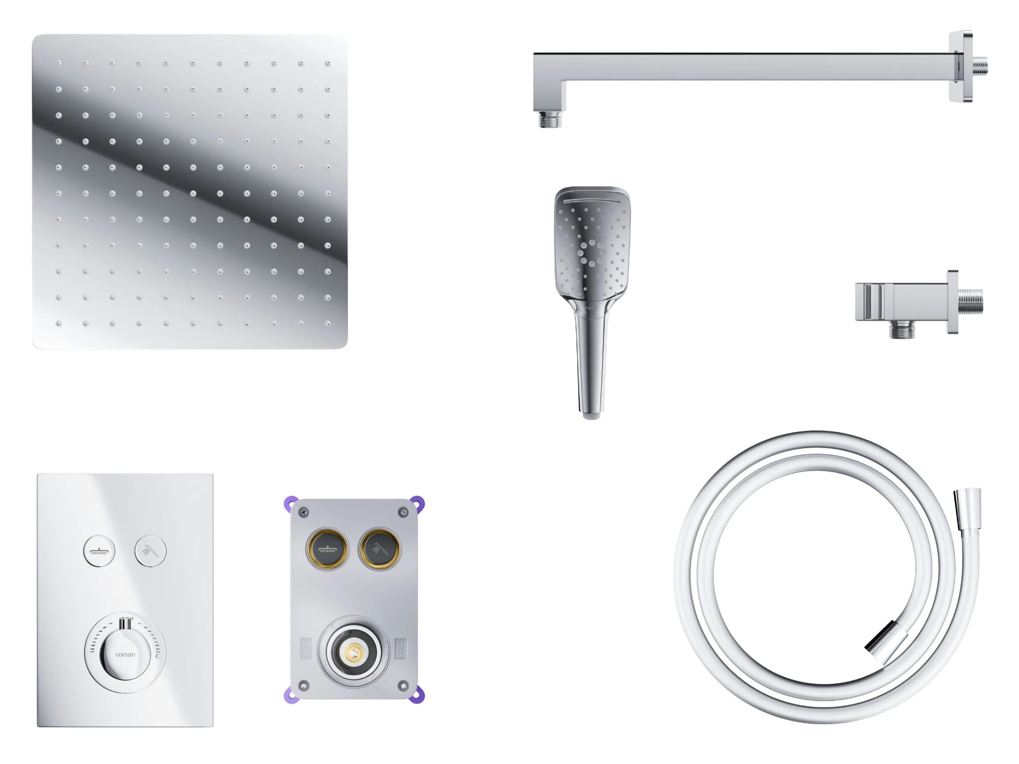 Zestaw prysznicowy podtynkowy corsan box termostat przyciskowy deszczownica 25cm chrom
