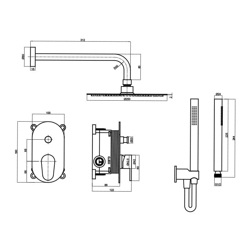 Zestaw prysznicowy składa się z minimalistycznej, eleganckiej baterii podtynkowej oraz nowoczesnej deszczownicy, która zapewnia relaksujący prysznic o uczuciu lekkiego deszczu. Intuicyjne oraz ergonomiczne elementy sterujące pozwalają łatwo dostosować temperaturę oraz natężenie strumienia wody, zapewniając indywidualne doznania podczas kąpieli.