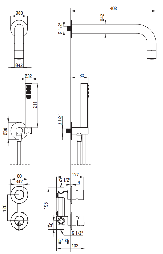 - WYLEWKA - Zasięg wylewki natryskowej/ wannowej [mm] 382