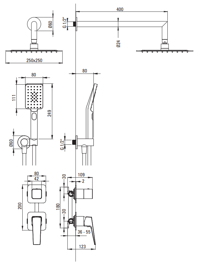 - WYLEWKA - Zasięg wylewki natryskowej/ wannowej [mm] 400