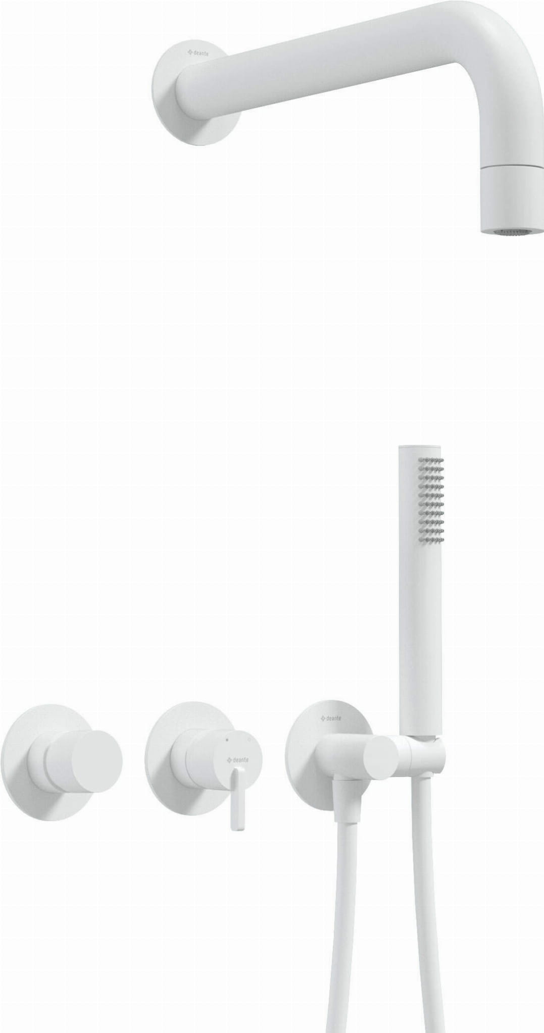 Zestaw prysznicowy podtynkowy z główką prysznicową - z baterią poziomą z kolekcji Silia firmy Deante w białym wykończeniu.