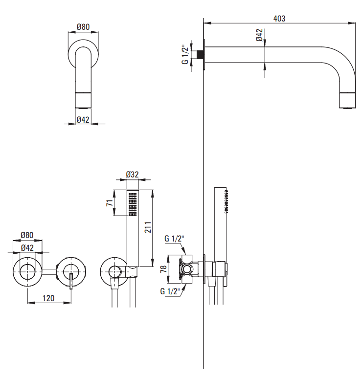 - WYLEWKA - Zasięg wylewki natryskowej/ wannowej [mm] 382