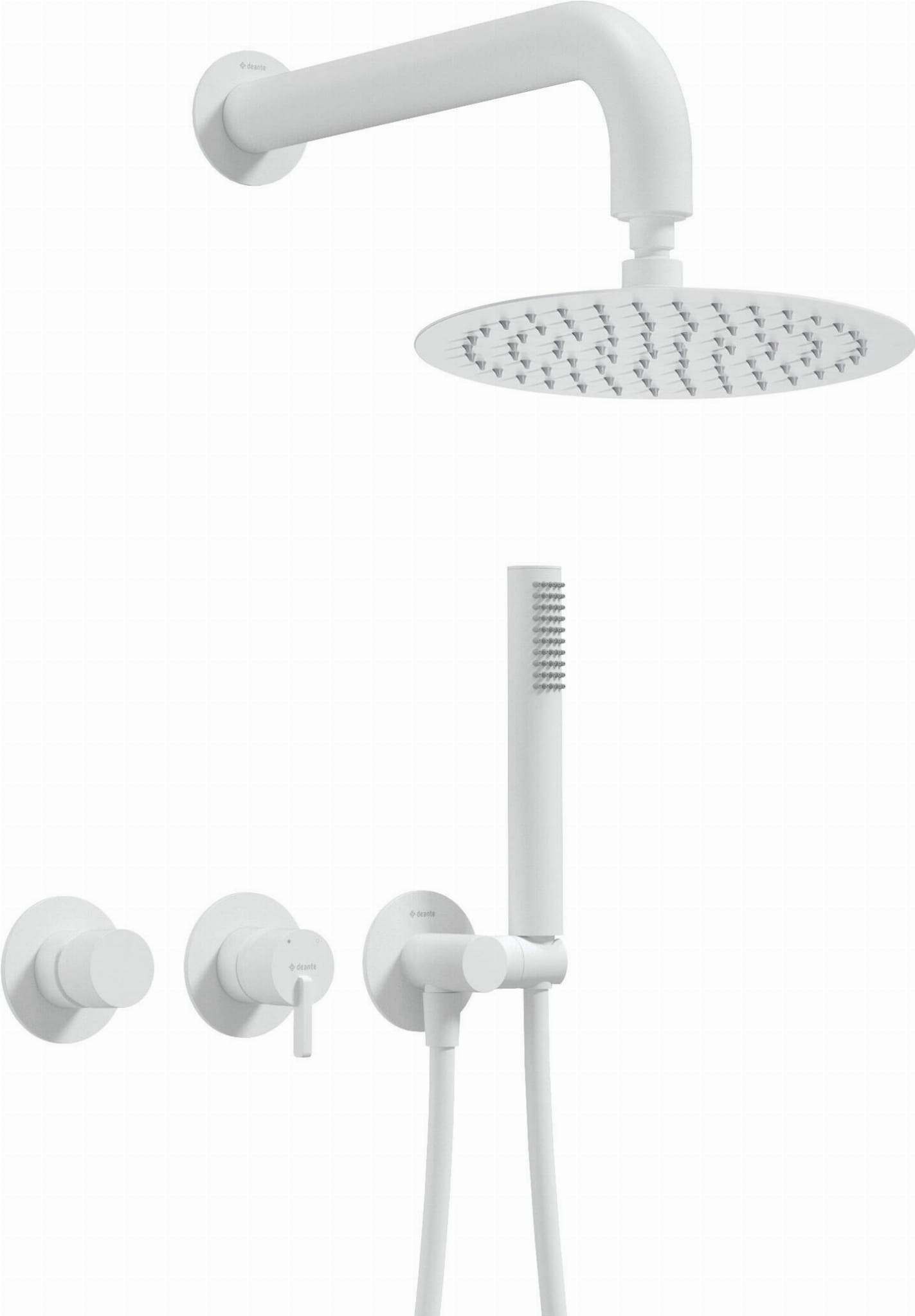 Zestaw prysznicowy podtynkowy z głowicą prysznicową - z baterią poziomą Silia firmy Deante w białym wykończeniu.