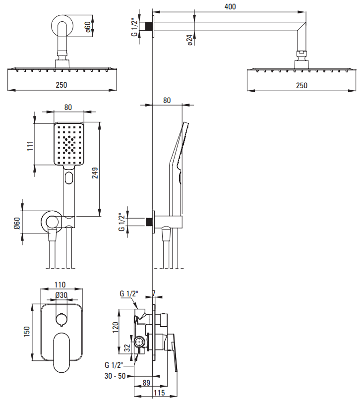 Zestaw prysznicowy podtynkowy posiada wszystkie niezbędne elementy do wyposażenia natrysku. Wysoka jakość użytych materiałów testowana wielokrotnie w warunkach laboratoryjnych zapewnia bezawaryjność. Nowoczesny design i eleganckie wykończenie przykuwają wzrok, a podtynkowy montaż powiększa optycznie przestrzeń. Minimalistyczne rozwiązanie sprawia, że zyskujesz miejsce na przykład na dodatkową półkę na kosmetyki lub wieszak. W rezultacie łatwiej i szybciej posprzątasz całe pomieszczenie.