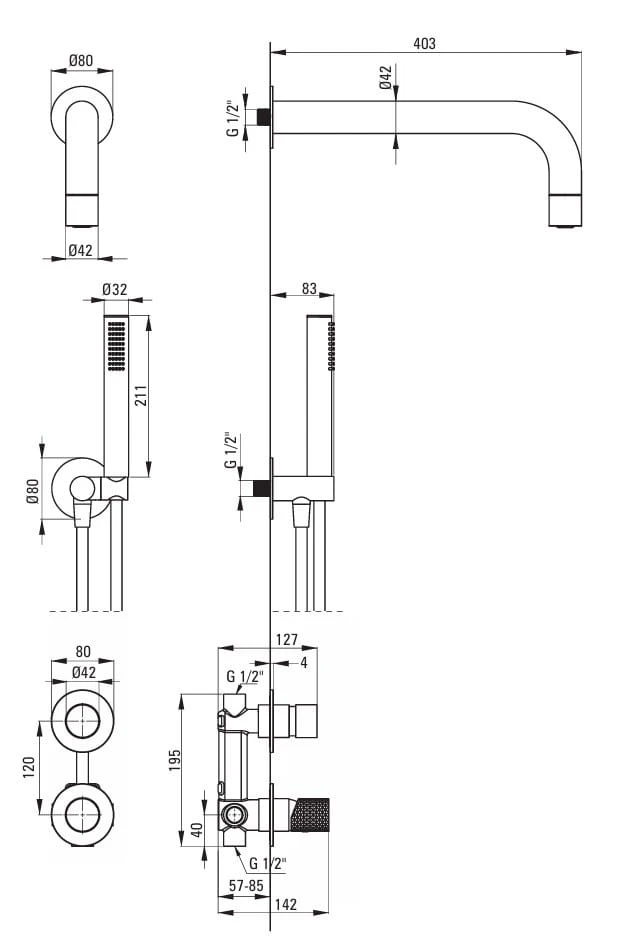 - WYLEWKA - Zasięg wylewki natryskowej/ wannowej [mm] 382