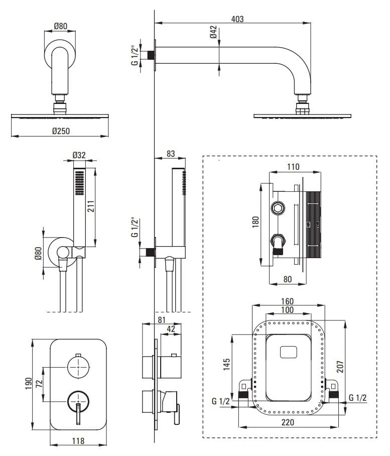 - Bateria podtynkowa mieszaczowa z ceramicznym, mechanicznym przełącznikiem natrysku, pozwala na szybką i intuicyjną zmianę strumienia wody między głowicą a słuchawką natryskową.
