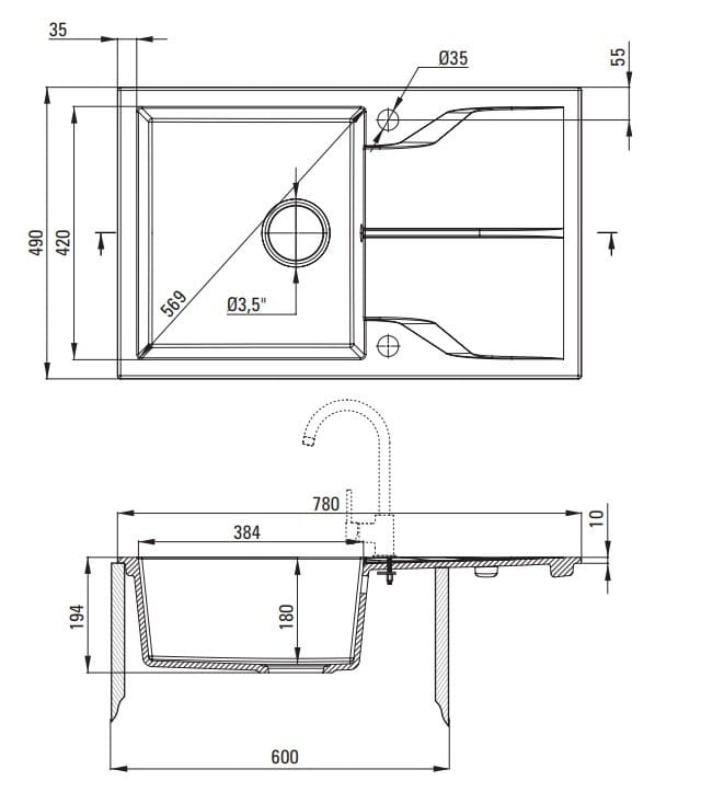 - Zlewozmywak wpuszczany Tak