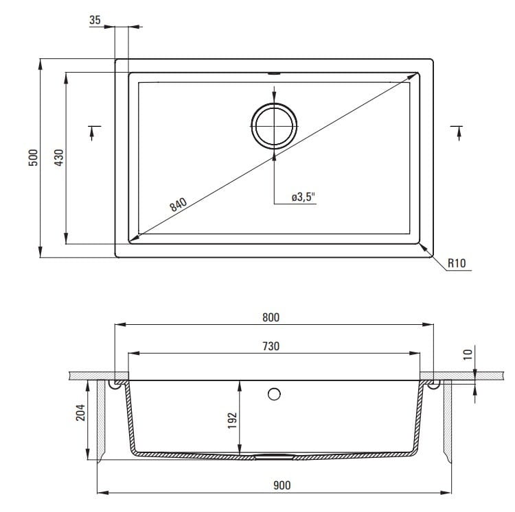 - Do szafki 900 mm