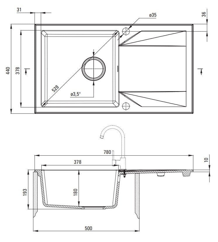 - Zlewozmywak wpuszczany Tak