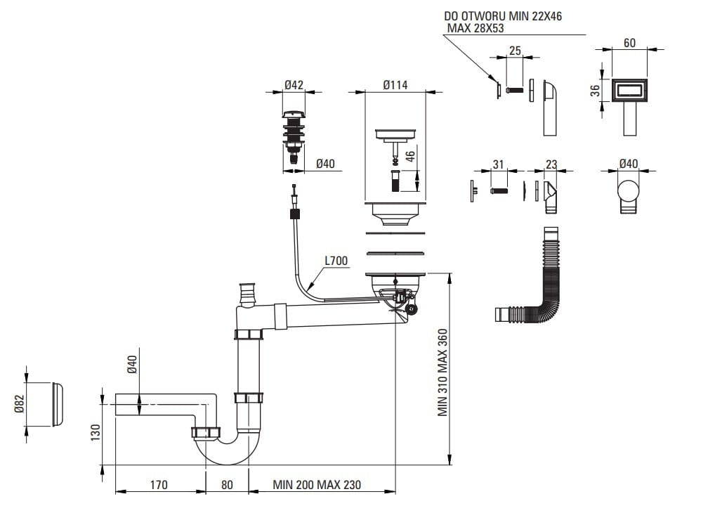 - Długość 780 mm