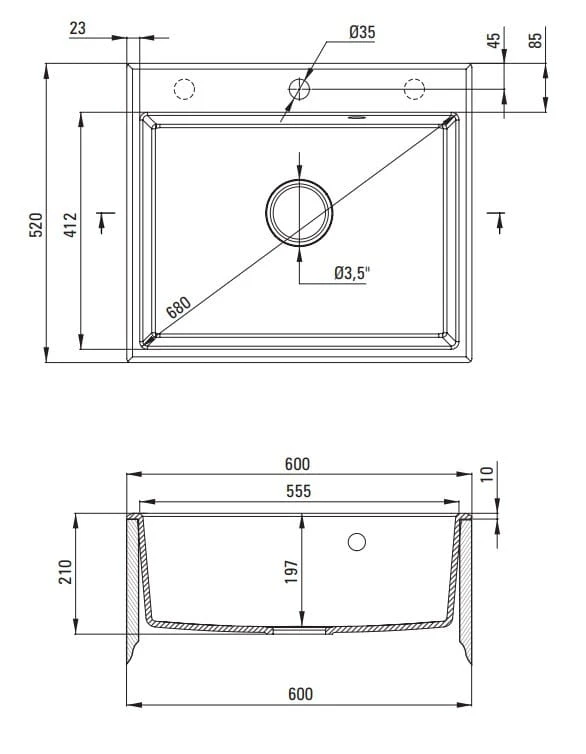 - Do szafki 600 mm