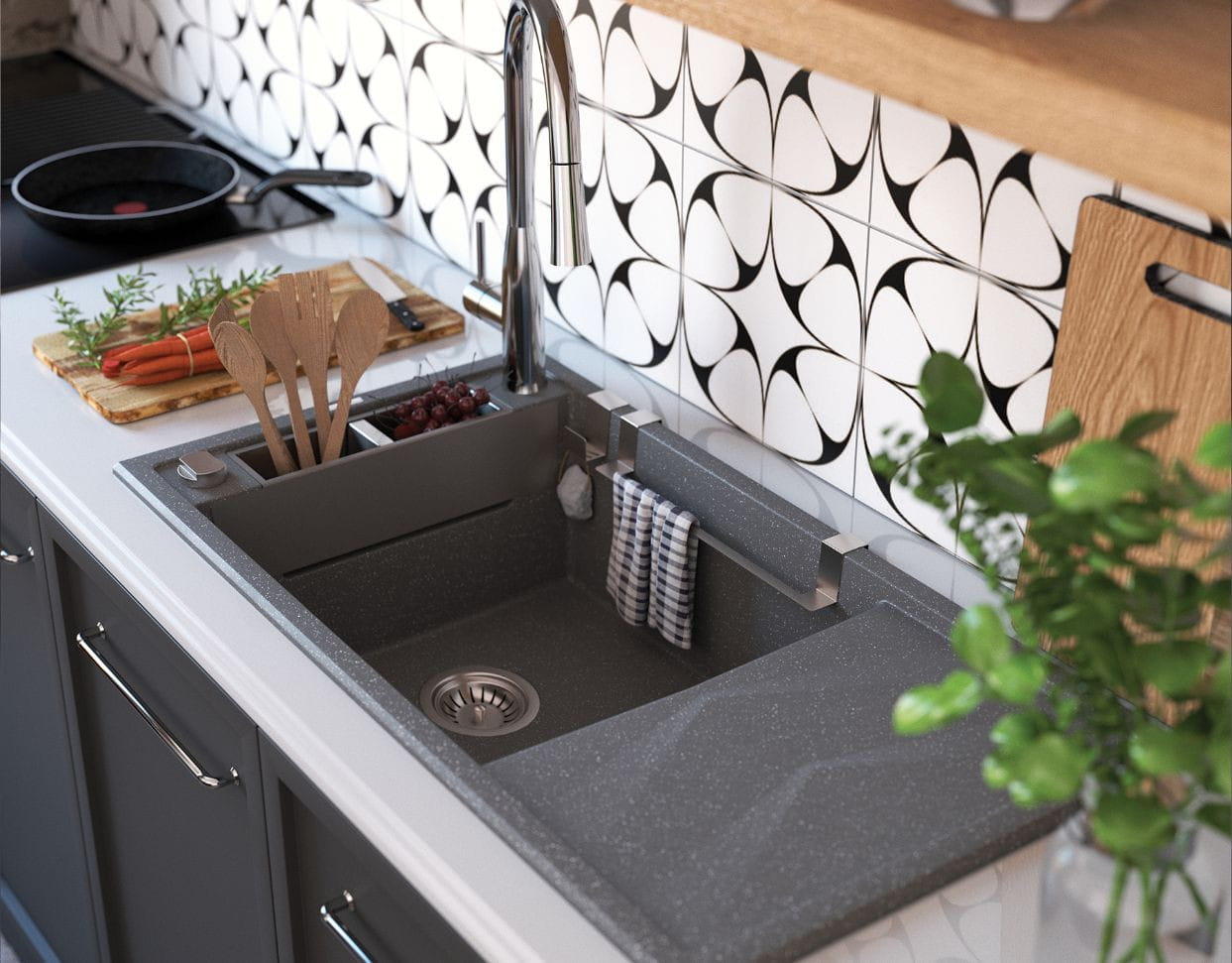 Zlewozmywak granitowy magnetyczny 1-komorowy z ociekaczem - nero Deante Magnetic