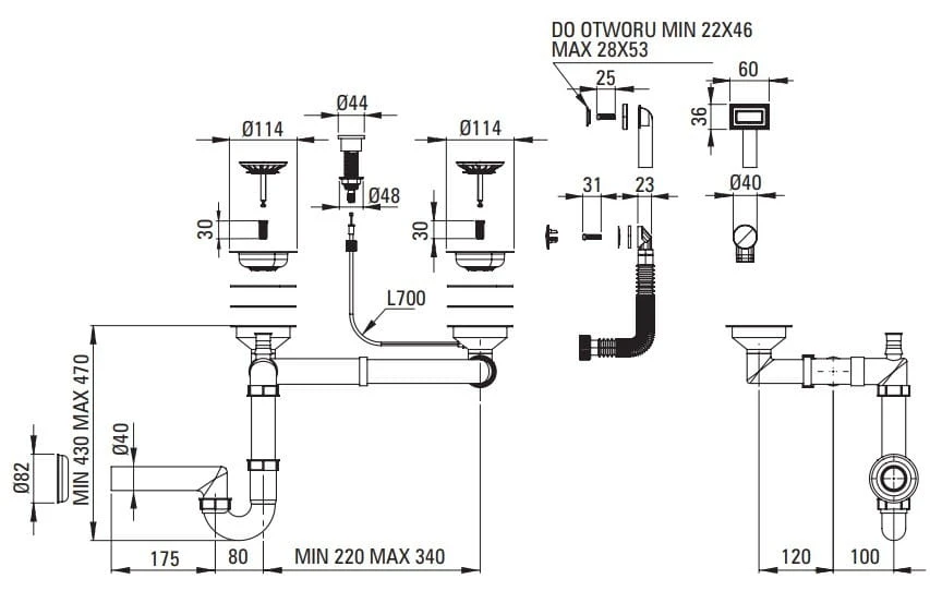 Zlewozmywak granitowy magnetyczny 1,5-komorowy bez ociekacza - szary metalik Deante Magnetic