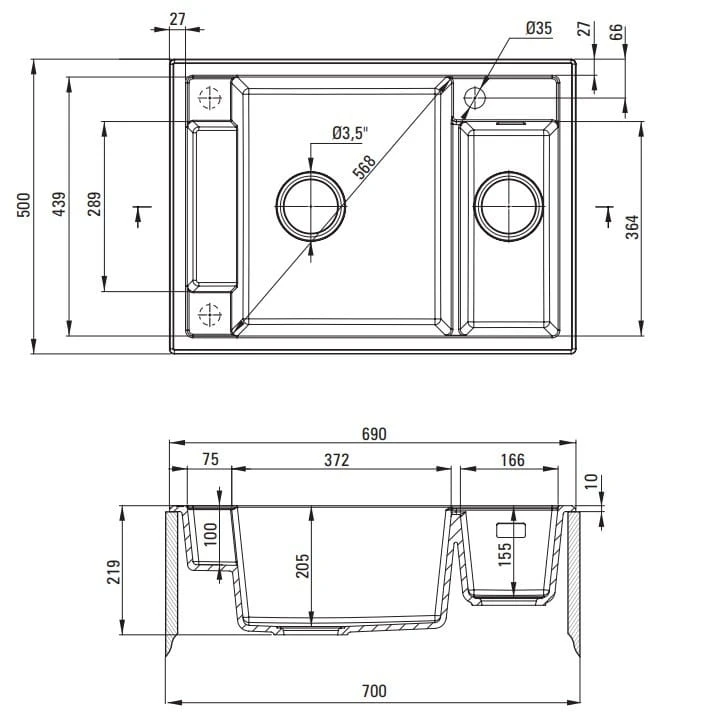 Zlewozmywak granitowy magnetyczny 1,5-komorowy grafit metalik Deante Magnetic