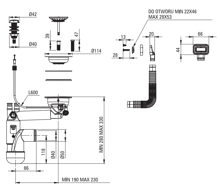 - Syfon oszczędzający miejsce Space-Saver Tak