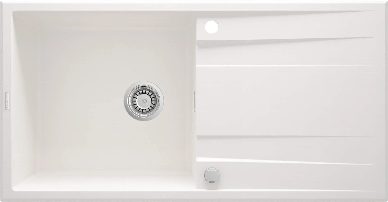Zlewozmywak granitowy 1-komorowy z ociekaczem Eridan firmy Deante w wykończeniu alabaster