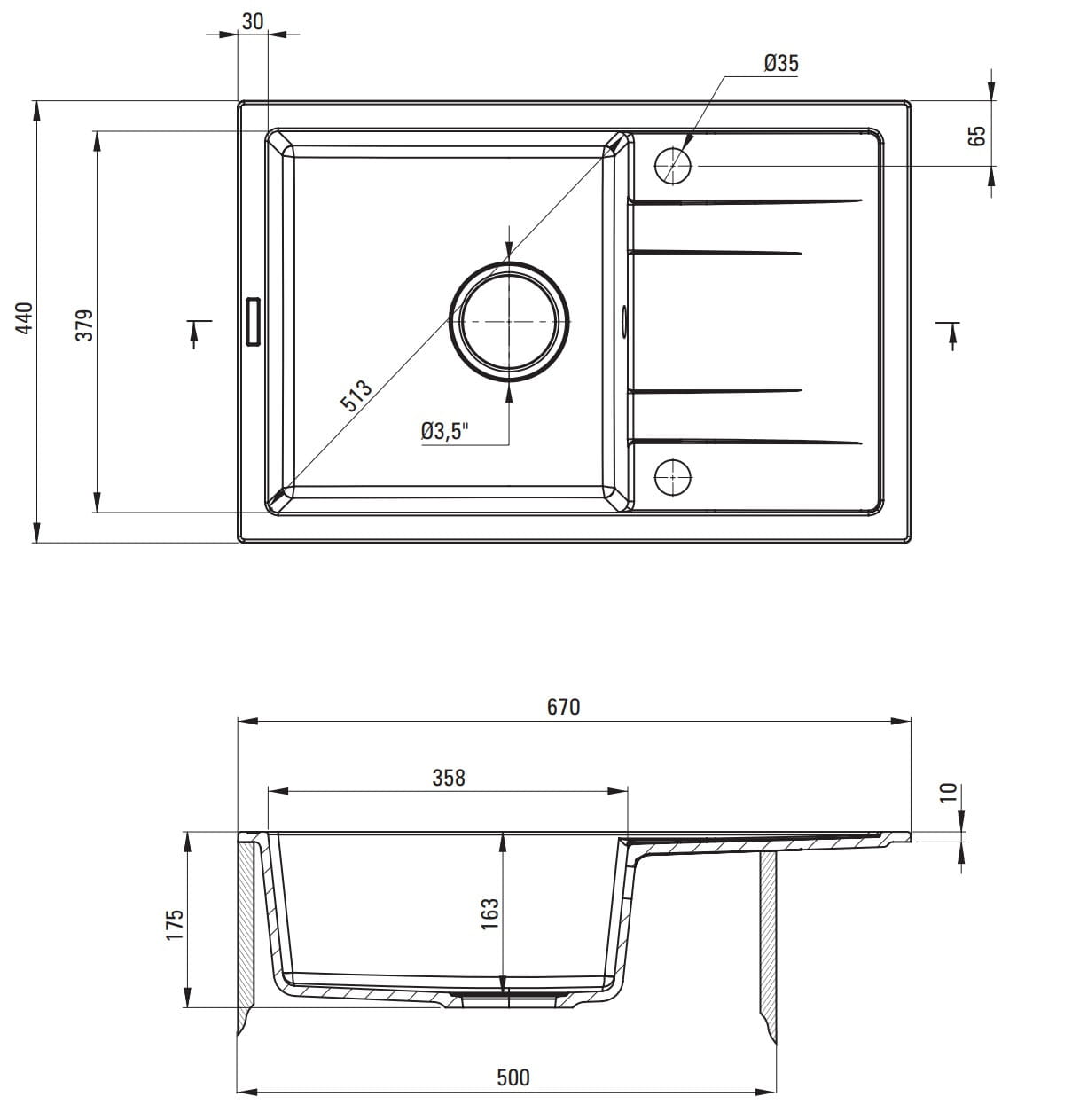 - Średnica Odpływu 3.5''