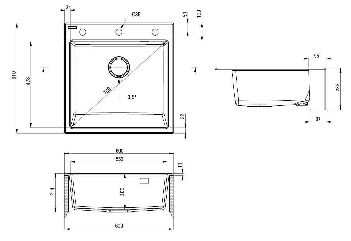 - Najwyższej jakości naturalny kompozyt granitowy.