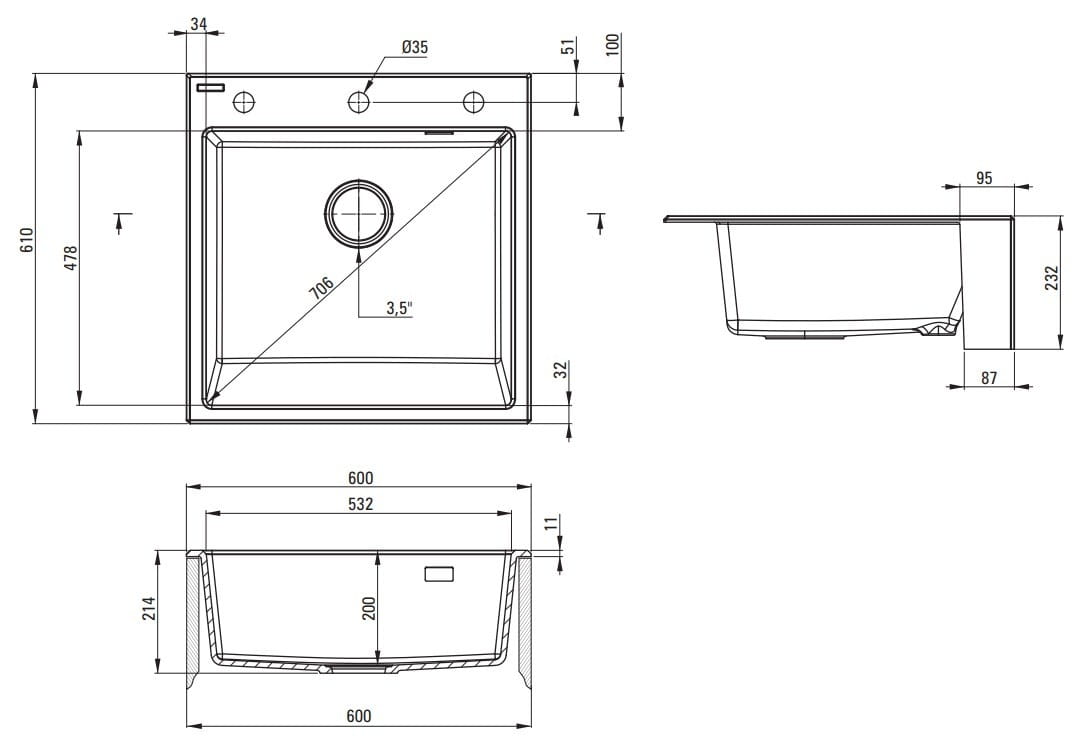 - Najwyższej jakości naturalny kompozyt granitowy.