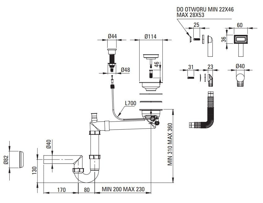 - Syfon oszczędzający miejsce Space-saver ułatwiający m.in. segregację śmieci