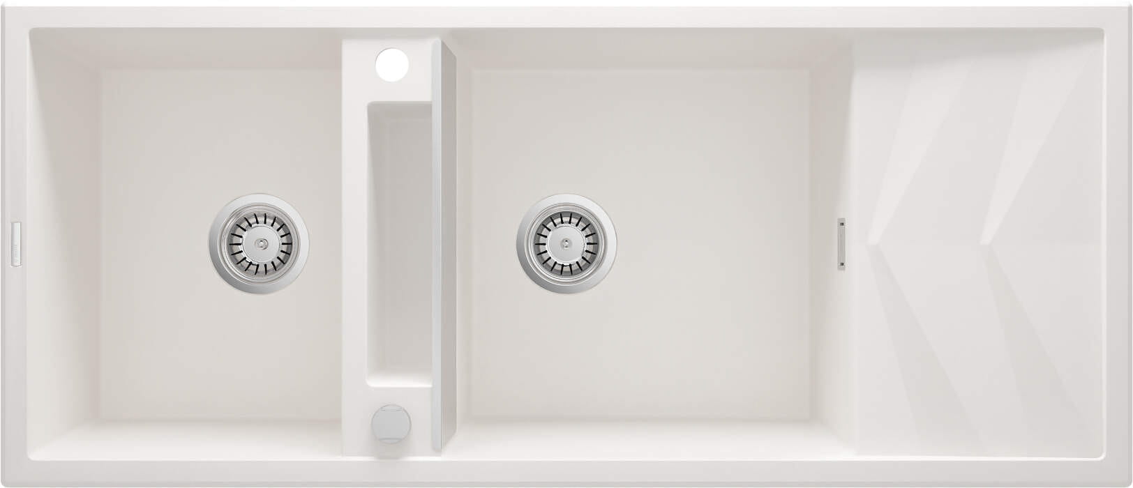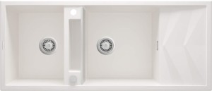 Zlewozmywak Magnetic to multifunkcyjne urządzenie kuchenne. Umiejscowiona pośrodku półka, oddzielona maskownicą daje dodatkową przestrzeń roboczą. Podwójna komora i duży ociekać zapewniają maksymalny komfort pracy w kuchni. Opcjonalnie zlewozmywak można wyposażyć w koszyczki, reling i haczyk. Alabastrowe wykończenie doskonale komponuje się z budzącymi zachwyt kuchniami w stylu skandynawskim. W połączeniu z blatem, w zbliżonym odcieniu sprawdzi się również w stylu rustykalnym, gdzie królują naturalne, ciepłe barwy.