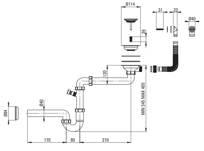 - Syfon oszczędzający miejsce Space-Saver Tak