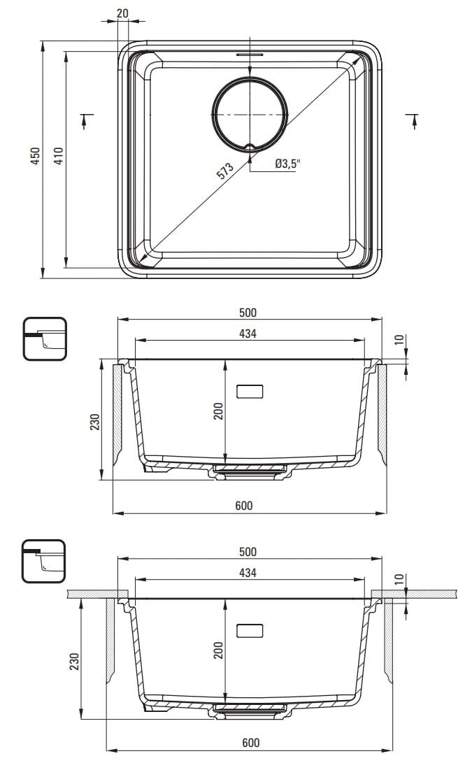 - Średnica Odpływu 3.5''