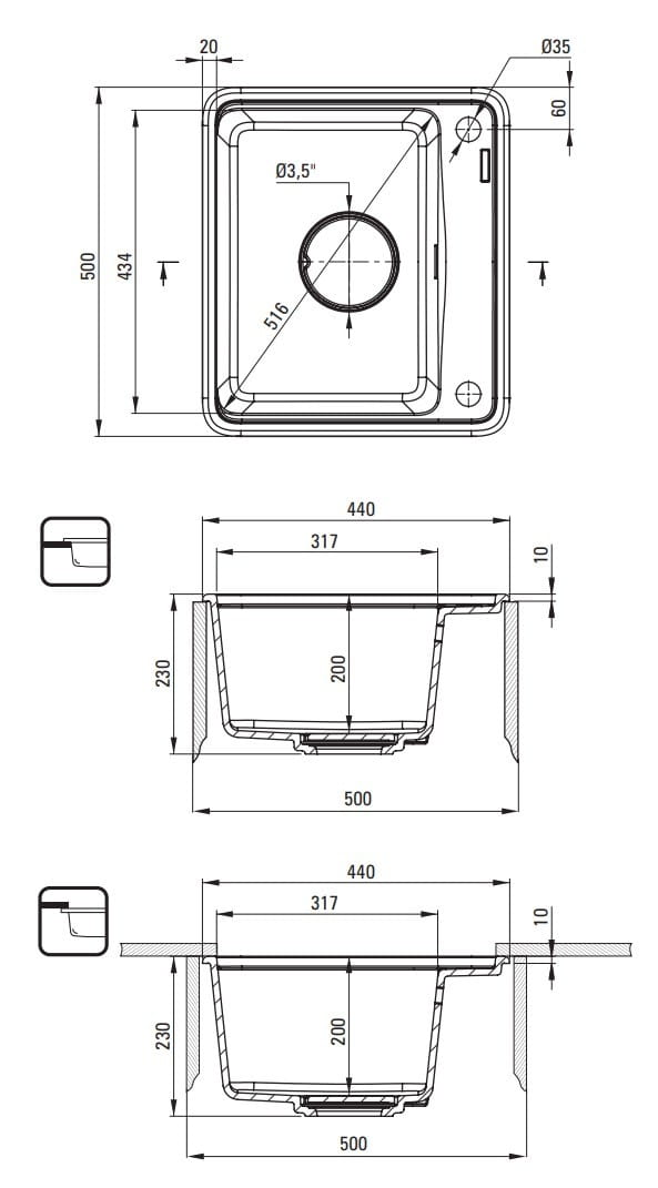 - Średnica Odpływu 3.5''