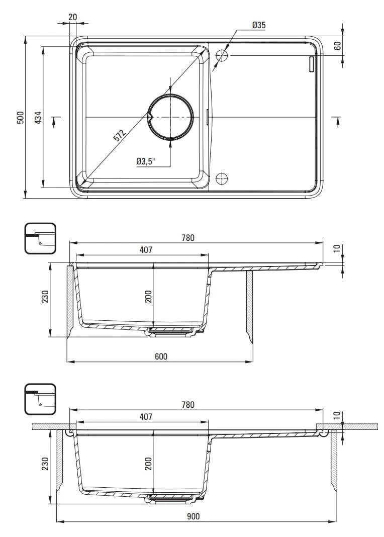 Zlewozmywak został wyposażony w nowatorski syfon o nazwie "Space Saver". Jeżeli do tej pory irytowały Cię rury i kolanka, które zajmowały większość przestrzeni w szafce, to rozwiązanie stworzone właśnie dla Twojej kuchni. Dzięki specjalnej konstrukcji i teleskopowej budowie, syfon może być dostosowany do indywidualnych potrzeb. Dzięki temu w szafce jest łatwo wygospodarować znacznie więcej miejsca, na przykład na przechowywanie domowych przetworów lub umieszczenie koszy na śmieci. Dodatkowo, istnieje możliwość podłączenia pralki lub zmywarki do tego syfonu.