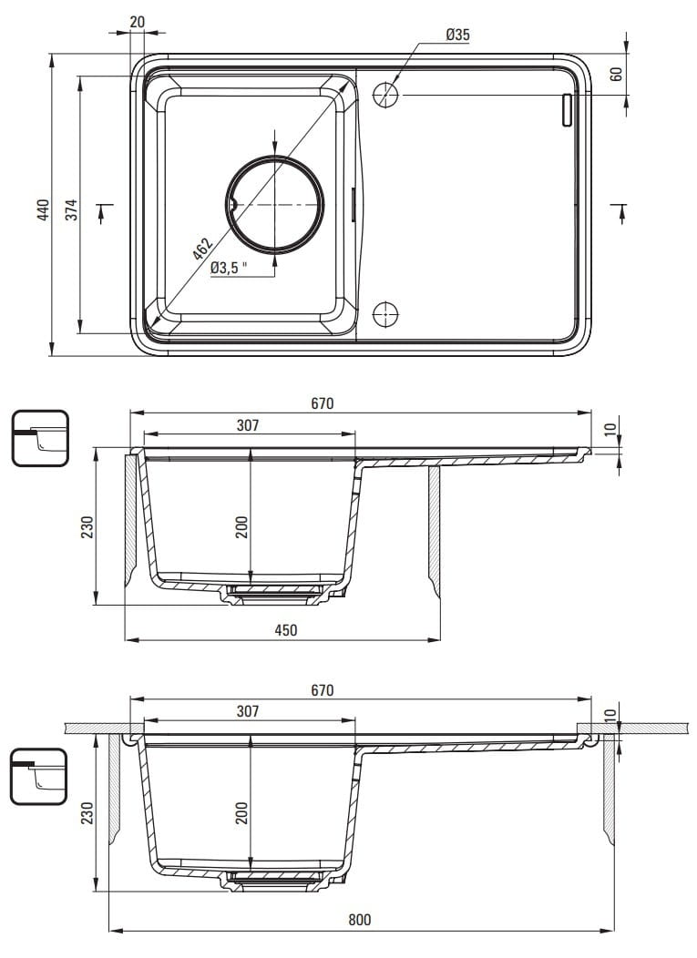 - Średnica Odpływu 3.5''