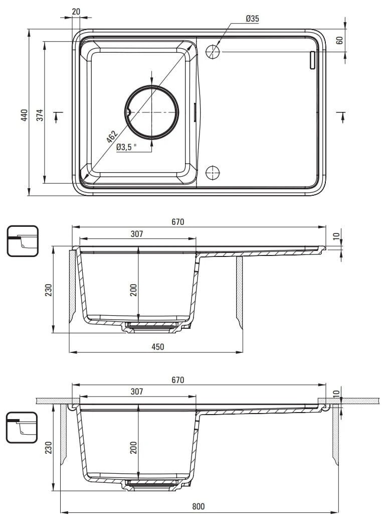 Zlewozmywak granitowy 1-komorowy ociekacz antracyt metalik Momi Deante