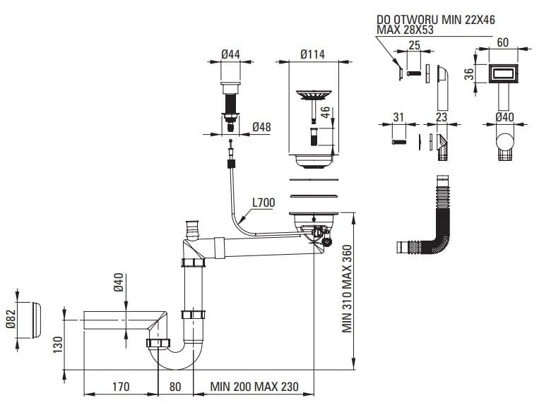 - Dodatkowe cechy maskownica odpływu w komplecie