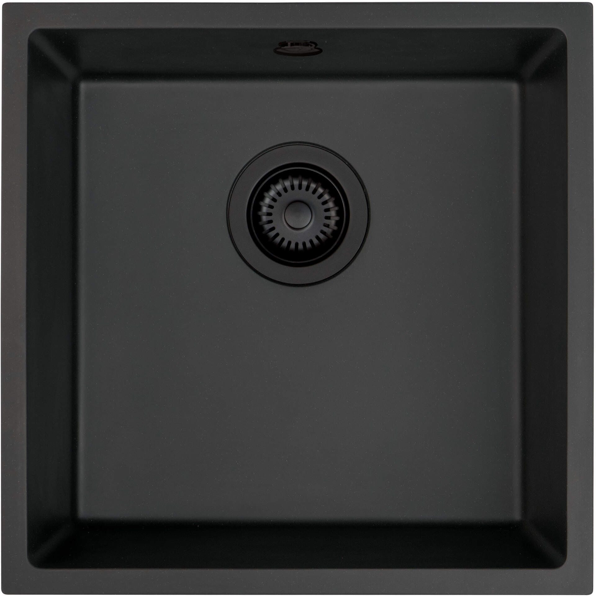 Zlewozmywak granitowy podwieszany 1-komorowy Corda firmy Deante w wykończeniu grafit metalik, o wymiarach 44x44 cm.
