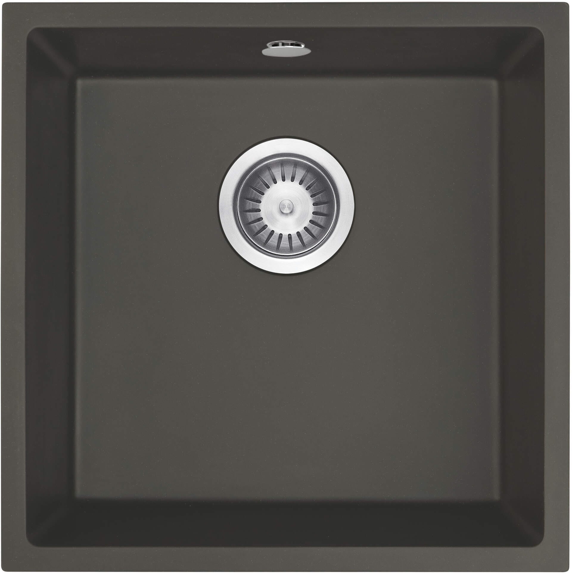 Zlewozmywak granitowy podwieszany 1-komorowy Corda firmy Deante w kolorze antracyt metalik, o wymiarach 44x44 cm.