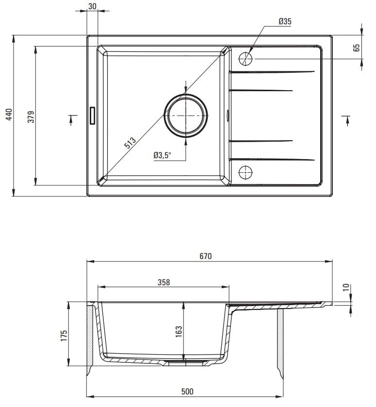 - Zlewozmywak wyposażony w osprzęt z podłączeniem do zmywarki.
