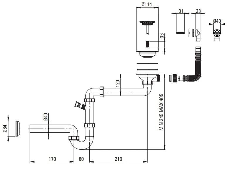 - Syfon oszczędzający miejsce Space-saver ułatwiający m.in. segregację śmieci.
